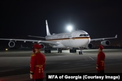 Самолет приземлился в Тбилиси с 20-минутным опозданием, в 23:20 по местному времени. Министра иностранных дел Германии в аэропорту встретила замглавы МИД Грузии Хатуна Тотладзе. В аэропорту был выставлен почетный караул.