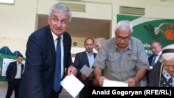 Лидер оппозиционной партии «Амцахара» Алхас Квициния проголосовал в сухумской девятой школе. Свой голос он отдал за партию «Единая Россия»: