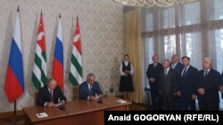 Встреча между президентами и расширенная встреча делегаций проходили в закрытом формате – журналисты на нее не попали. После завершения закрытых встреч было подписано Соглашение между Республикой Абхазия и Российской Федерацией о сотрудничестве в области организации страхования граждан Российской Федерации, постоянно проживающих на территории Республики Абхазия, и оказания им медицинской помощи в медицинских организациях Российской Федерации. Соглашение подписали министры здравоохранения России и Абхазии Вероника Скворцова и Тамаз Цахнакия.