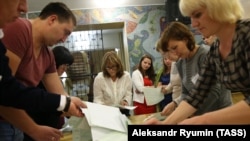 На первых прямых выборах губернатора Севастополя в аннексированном Россией Крыму победил кандидат от "Единой России" Дмитрий Овсянников. В семи регионах победу одержали временные главы регионов, которые были назначены президентом России Владимиром Путиным минувшей зимой и весной.