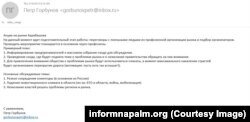 Интересно письмо, которое Ардзинба получает от некоего Андрея Голда 4 мая 2015 года с адреса "goldabxazia@mail.ru" (Радио Свобода не удалось установить личность этого человека или того, кто скрывается за таким именем). В нем содержатся предложения по "дальнейшему плану действий", в которых упоминаются и возможные теракты. Помимо этого, автор письма неплохо знаком с российскими политтехнологиями – он предлагает создать для обеспечения безопасности исполнителей акций организацию-прокладку "между заказчиком и исполнителем", "похожую на "Фонд эффективной политики". Позже Ардзинба получает от Голда письма постоянно. Среди них – несколько текстов выступлений, написанных для Веры Шиховой, лидера "Народной Рады Бессарабии", и других активистов движения.