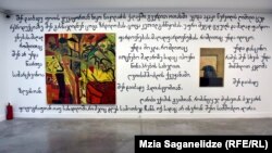 «Ты родился у потийского элеватора» – это стихотворение Карло Качарава нанесено на одну из стен выставочного пространства. Куратор экспозиции Ирина Попиашвили рассказывает, как попросила уличного артиста Гагоша написать текст стихов Карло: это и еще одно – «Ночную элегию»: