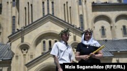 Параллельно в грузинских церквях идут венчания семейных пар. До этого прошла литургия в связи с Днем Вознесения.