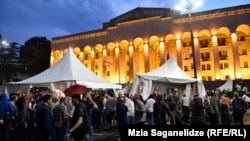 Организаторы митинга на проспекте Руставели приняли решение перенести палатки на проезжую часть