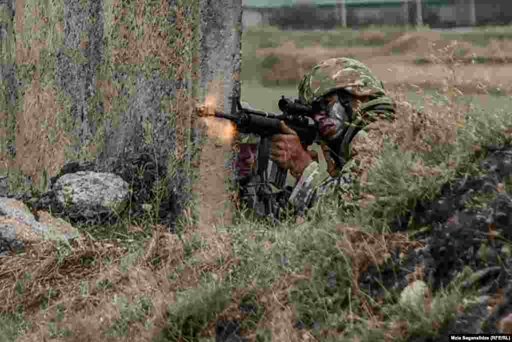 В Вазиани продолжаются международные военные учения "Достойный партнер 2018". Фото Мзии Саганелидзе.