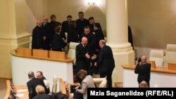Не обошлось без инцидентов и непосредственно на пленарной сессии. Через несколько минут после ее начала депутат от «Грузинской мечты» Ираклий Кобахидзе заявил: