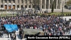 Против режима самоизоляции и за отставку главы республики сегодня прошел несанкционированный митинг с участием нескольких сотен человек в центре Владикавказа. Это продолжение истории, о который мы рассказывали 10 апреля в материале «Советский характер против чужого вируса». Там мы говорили про особую страту в североосетинском обществе – «советских людей», которые не признают существования коронавируса. Они утверждают, что это дезинформация, которую затеяли Кремль или даже мировое правительство, чтобы под предлогом пандемии всех чипировать.