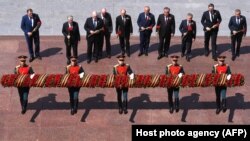 Вполне естественно, среди сидевших на трибуне абхазские телезрители искали глазами «нашего» – ведь президент Абхазии Аслан Бжания оказался среди лидеров иностранных государств, которых пригласили на парад и которые приехали. Там телекамеры его не показали, но вот когда десятка лидеров стран отправилась пешком в Александровский сад за кремлевской стеной, возлагать цветы к могиле Неизвестного солдата, тут уж он оказался на виду. А когда упомянутые лидеры выстраивались перед мемориалом (в центре шеренги – российский президент Владимир Путин), произошла заминка, на которую обратили внимание и далеко за пределами Абхазии: стоявший рядом с Путиным президент Белоруссии Александр Лукашенко вдруг резко шагнул в сторону, а его место занял президент Абхазии Аслан Бжания. Среди моих сухумских знакомых завязались споры в связи с данным эпизодом; некоторые утверждали, что так надо было стать согласно протоколу мероприятия, который выстраивает представителей государств в алфавитном порядке.