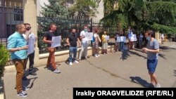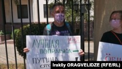 У здания Секции интересов России при посольстве Швейцарии в Грузии прошла акция протеста против поправок в Конституцию РФ и обнуления президентских сроков Владимира Путина.