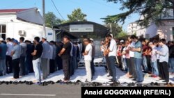 Я сегодня подъехал к приспособленному под мечеть одноэтажного зданию, расположенному вблизи приморской набережной Сухума, когда здесь уже закончилась начавшаяся в восемь утра, как и в аналогичном молельном доме в Гудауте, праздничная молитва. Как и в предыдущие годы, помещение этой импровизированной мечети оказалось неспособно вместить всех пришедших на молитву, поэтому многие разместились во дворе дома и прямо на проезжей части улицы, стоя на коленях, слушали проповедь через динамики. Немало людей после окончания молитвы еще стояли здесь и разговаривали, некоторые были в медицинских масках.