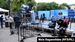 Джапаридзе с гитарой пришел к центральному офису ГМ, где в течение всего дня продолжался монтаж большой концертной сцены – судя по всему, чтобы начать отмечать победу партии власти сразу после закрытия избирательных участков и объявления результатов экзит-полов.