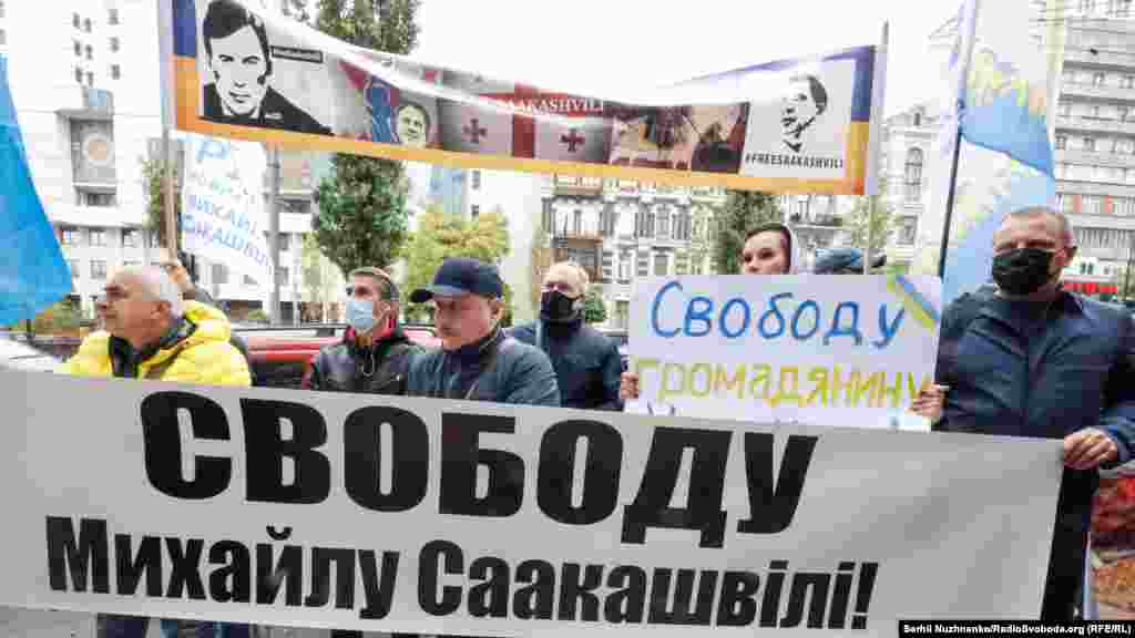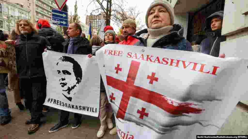 Сторонники главы исполкома Национального совета реформ Украины, экс-президента Грузии Михаила Саакашвили провели пикет у посольства Грузии в Украине с требованием освободить своего лидера, задержанного в Тбилиси.
