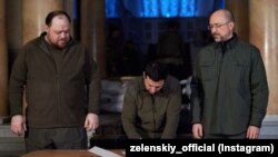 «Только что президент Украины В.Зеленский подписал исторический документ – заявку на членство Украины в Европейском Союзе. Вместе с главой Верховной Рады Украины Стефанчуком и премьер-министром страны Шмыгалем подписано также Совместное заявление. Документы уже на пути в Брюссель», - написал представитель офиса президента.