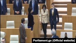 Когда отворились парадные двери парламентского зала, депутаты увидели, что рядом с президентом Саломе Зурабишвили стоит исполняющий обязанности посла Украины в Грузии Андрей Касьянов.