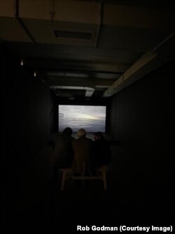 – Тот вариант выставки, который у нас получился для Depo, это выставка двух художников – Сэм Жюри (Британия) и Антона Очирова (Абхазия, SKLAD). Сэм Жюри представляет там свои видеоработы, это документальная съемка на мониторах, очень большие проекции триптиха с фильмом This You Must Remember («Вы должны это помнить»), а также большая проекция с морем. И Антон Очиров представил свои работы на четырех стендах, это тексты на поверхности стекла с подсветкой и его тексты на стенах. Для меня, как для куратора, было интересно, что есть такой визуальный подход с таким мучительным погружением, с чувством тревоги, которое является центральным для работ Сэм. С другой стороны, Антон дал этому важный текстовый элемент. То есть, с одной стороны, это контекст, и, с другой стороны, поэзия Антона была неким элементом цифровой эмпатии, того, как в Абхазии ощущаются разные точки мира, доступные через цифровую реальность, через то, что мы читаем новости и сопереживаем. Он подобрал десять стихотворений для этой выставки, что-то написал специально для нее, но в целом это как бы стихотворения о различных географических локациях, материалом для которых послужили цифровые и новостные источники или устные истории из Абхазии. География этих стихотворений простирается от Кабула до Рамалы и от Мариуполя до Гудауты.