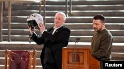 Зеленский, со своей стороны, подтвердил догадки, вручив спикеру Палаты общин Линдси Хойлу летный шлем: