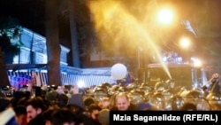 У здания парламента Грузии, где проходит акция протеста, применен водомет.