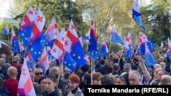На оппозиционном митинге в Тбилиси вновь скандируют «Сухуми!» и «Цхинвали!». Как и месяц назад, собравшихся к этому призвал активист Ираклий Павленишвили.