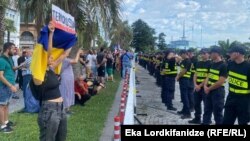 На месте установлены металлические ограждения, усилены меры безопасности. С раннего утра полицейские задержали девять участников протеста, пишет грузинская служба Радио Свобода со ссылкой на МВД Грузии.