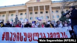 Одновременно с судебным заседанием Михаила Саакашвили многочисленная группа «Национального движения» собрались у Тбилисского городского суда и провела митинг в поддержку экс-президента.