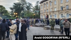 Около шести утра, когда небо было еще темным, спикер Лаша Ашуба вышел к митингующим на крыльцо здания и объявил, что только что на внеочередном заседании сессии парламентарии ратифицировали соглашение по госдаче: