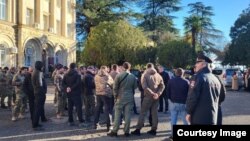 Представители топливных компаний и граждане собрались на сухумской Набережной Махаджиров, после чего переместились к комплексу правительственных зданий. На месте были усилены меры безопасности.