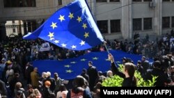 Сегодня утром протестующие встречали депутатов у входа в парламент с огромным флагом ЕС и с транспарантами: «Нет российскому закону!», «Этот закон – большая стена между Грузией и Евросоюзом», «В Грузии вирус», «Нет – России, да – ЕС!» и так далее. Многих журналистов на обсуждение законопроекта в комитет по юридическим вопросам не пустили, в зале были лишь съемочные группы телекомпаний. Представители власти объяснили это тем, что заседание транслируется в прямом эфире.