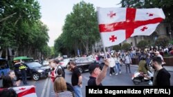 В центре Тбилиси вновь проходит акция против закона об «иноагентах». Представители неправительственного сектора, гражданские активисты, оппозиция и молодежные организации и движения перекрыли проспект Руставели.