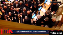 Между тем, в конфронтацию вступили и другие депутаты. В потасовке участвовали около 20 депутатов. Член парламентского большинства Рима Берадзе ударила по голове члена «Стратегии Агмашнебели» Паату Манджгаладзе папкой с бумагами, а лидеру партии Георгию Вашадзе пригрозила планшетом.