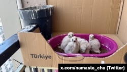Пользователи твиттера и телеграма следят за буднями соколиной семьи, поселившейся на балконе в Тбилиси.