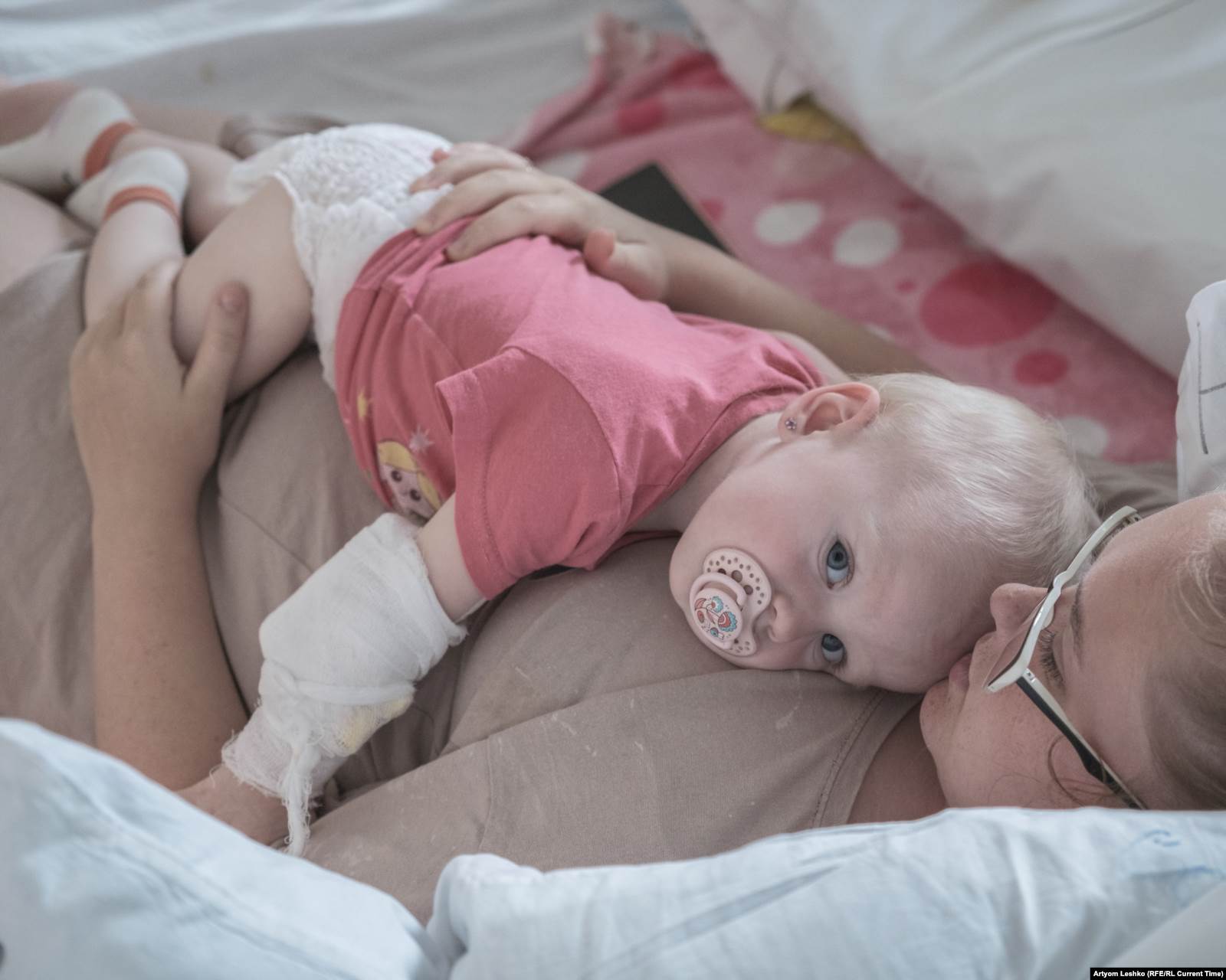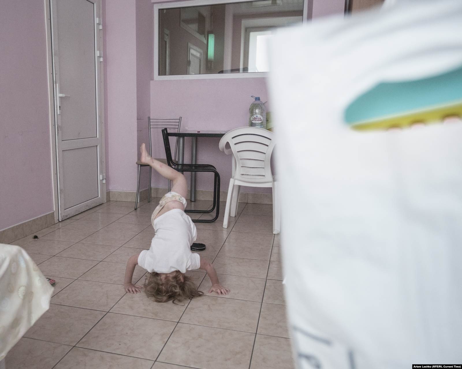 Оксана с годовалой Софьей попали в отделение накануне. "Прошел он как обычно, ведь с детьми не соскучишься", – рассказывает о первом дне в больнице Оксана. Софья ползком исследует палату – из этого бокса ей никуда нельзя выходить. Запрет действует, чтобы избежать перекрестного заражения: наличие ковида не исключает других инфекций.