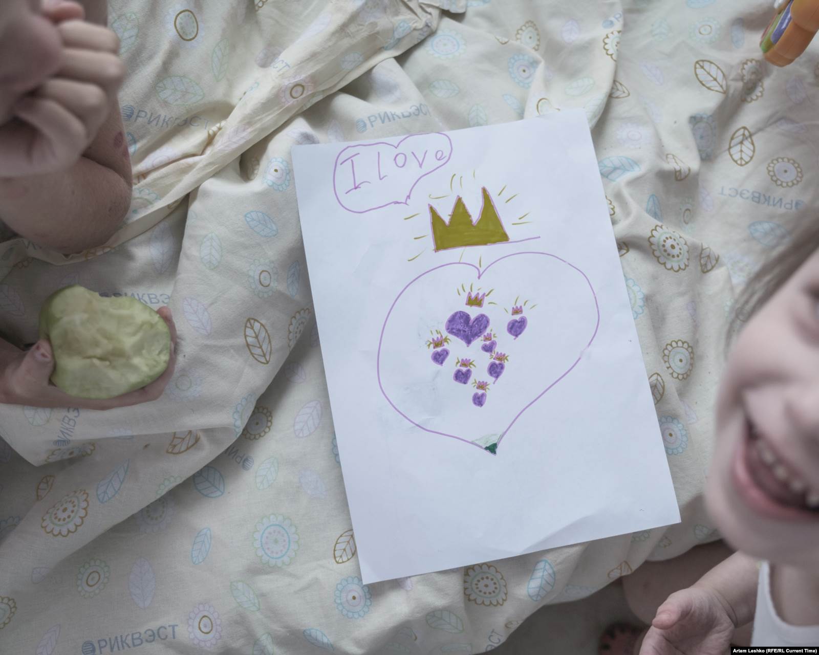 — Нормально. Математикой занималась, рисовала, – девочка показывает два рисунка: пейзаж из компьютерной игры про космонавтику и фиолетовое сердце с надписью "Love".