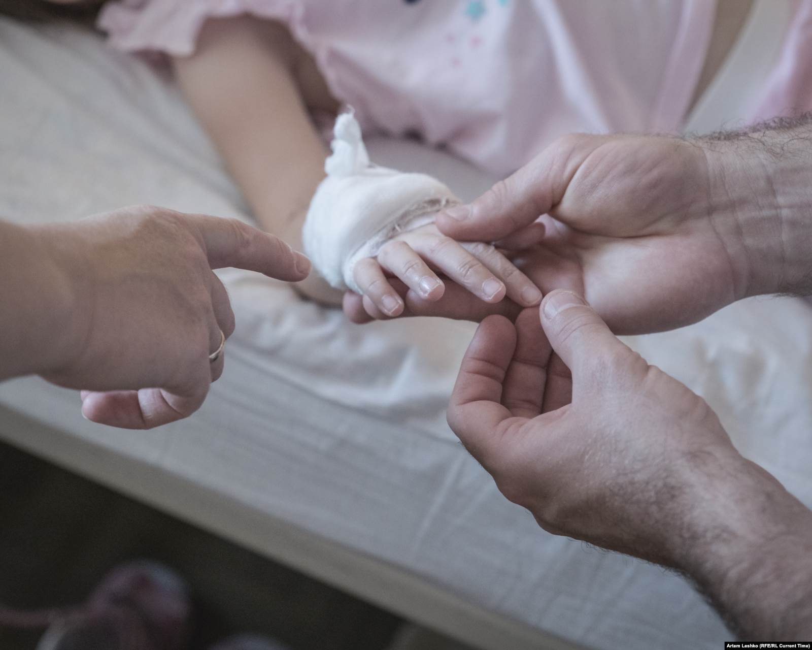 "Софье все интересно было – везде пыталась залезть, но сейчас она поспокойнее уже, – продолжает Оксана. – С соседом по палате играет, слушает сказки в телефоне. Быть с ребенком постоянно немного тяжело, но ничего страшного. Иногда выдыхаем: Софья нетребовательная девочка. Только врачей боится и на осмотрах плачет. В поликлинике врачей без СИЗов Софья тоже боялась. Так с самого детства".