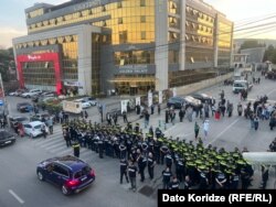 Сотрудников правоохранительных органов доставили на место на микроавтобусах. Поддержать политика пришли его сторонники и активисты, но силовики удерживали их за пределами двора. Некоторых активистов задержали.