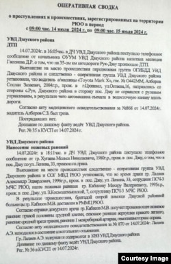 Телеграмм канал «БОНВ[Ӕ]РНОН» опубликовал оперативную сводку МВД РЮО о совершенных происшествиях и преступлениях с 09:00 14 июля до 09:00 15 июля, в котором перестрелка в Цхинвале не упоминается.