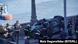 Как минимум один человек находился в машине, упавшей сегодня в Тбилиси с Метехского моста в воды Мтквари.