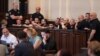 Зал заполнен. Там, где должен сидеть один человек, располагаются по двое, а иногда и по трое. Судебные приставы принимают решение добавить еще один ряд сидений. Среди присутствующих — пятый президент Грузии Саломе Зурабишвили.