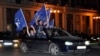 Два дня подряд толпы сторонников Иванишвили в синих майках собирались перед районными отделениями избирательной комиссии.