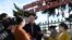 Представители Центра по контролю заболеваний и общественного здоровья Грузии объясняют местным жителям, как вести себя в сложившейся ситуации.